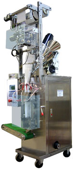 A low cost no-frills automatic vertical form fill seal sachet packaging machine (FFS machine) suitable for packing non-free flowing or viscous powders in single-use sachets for food service, pharmaceutical, contract packing and other industries.