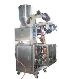 A low cost no-frills automatic vertical form fill seal sachet packaging machine (FFS machine) suitable for packing free-flowing powders/granules/snack foods in single-use sachets for food service, pharmaceutical, contract packing and other industries.