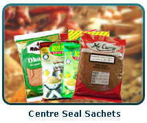 A low cost no-frills automatic vertical form fill seal sachet packaging machine (FFS machine) suitable for packing non-free flowing or viscous powders in pillow packs for common household consumer goods
