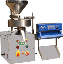 The SIKRI Filler Sealer is an operator run machine which needs an operator to fill the tea bags and then seal it. The tea is dropped into the tea bag with the help of a foot switch attached to the machine, thus keeping both the hands free for faster production.